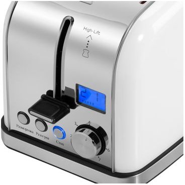 - 7 степеней обжарки позволяют делать тосты из разных сортов хлеба (белого, зернового, чёрного и т.д.). Степень обжаривания выбирается с помощью регулятора и отображается чёрточками на экране. Также на дисплее показывается обратный отсчёт времени приготовления
