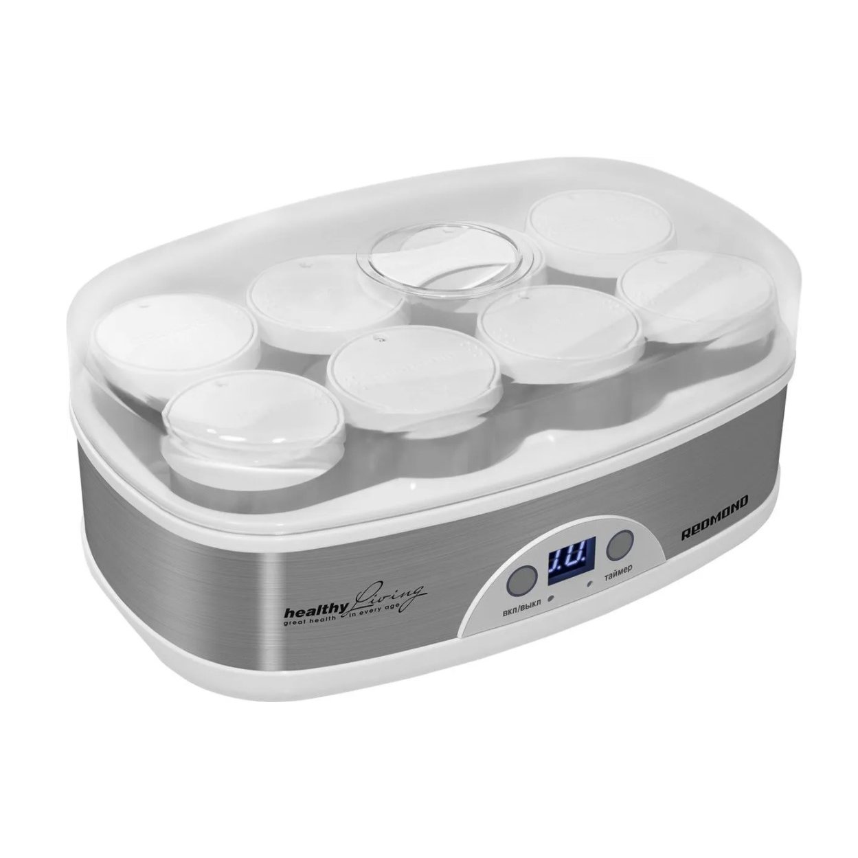 Йогурт — это не только вкусное лакомство, но и натуральный кисломолочный продукт, полезный как детям, так и взрослым. С йогуртницей REDMOND RYM-M5401 вы можете легко приготовить его у себя дома. Удобное электронное управление с дисплеем позволяют точно установить время приготовления йогурта и отслеживать готовность с помощью таймера обратного отсчета. Каждая из восьми стеклянных баночек, которые входят в комплект прибора, снабжена крышкой с ручным дисковым маркером даты, с помощью которого можно указывать срок хранения йогурта.